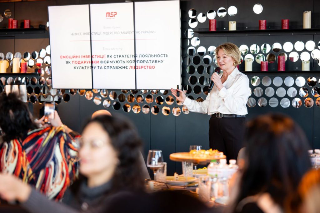 Любов Підгорна (співзасновниця ТОВ МСП, ТМ Finest) говорила про лояльність як стратегічний актив компанії. Подарунки, увага до деталей та естетика — це не «приємні дрібниці», а інструменти, що підсилюють довіру та корпоративну культуру.